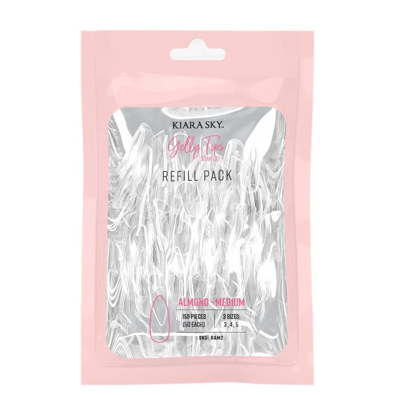 Kiara Sky Gelly Tips Refill Packs - Soak Off Soft Gels - Almond Shape (Medium Length) (Sizes 3, 4, 5)