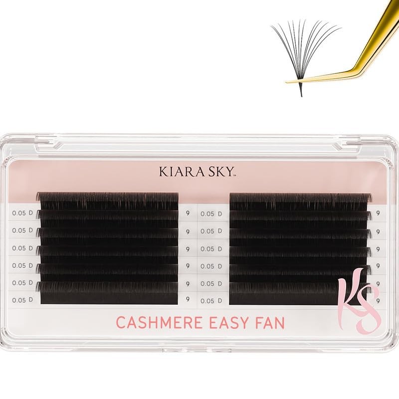 KIARA SKY KIARA SKY LASH Premium Cashmere Easy Fan Lash Extensions | Soft Semi-matte natural finish | Fans like Butter | For Professional Eyelash Extensions Use Only | Black, (D-0.05-9MM)