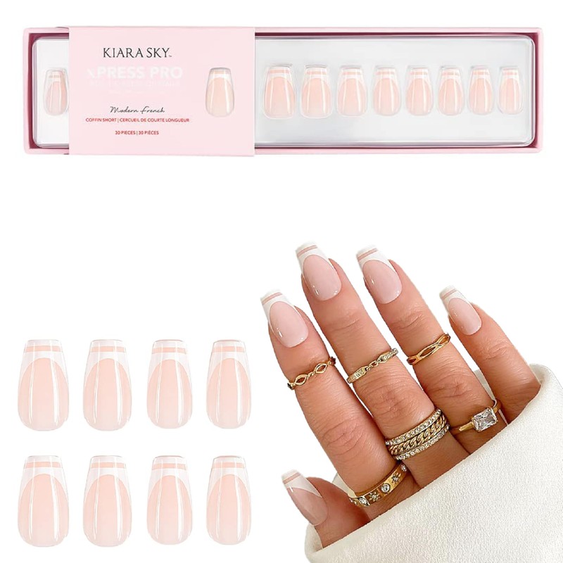KIARA SKY Kiara Sky XPRESS PRO 100% Acrylic Press On Nails - Instant Salon Quality Manicure, Long-Lasting, Easy Application, 30 Pieces Kit, Coffin Short-Modern French