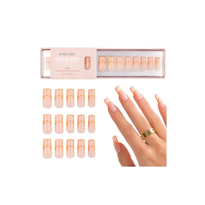 Kiara Sky XPRESS PRO 100% Acrylic Press On Nails - Instant Salon Quality Manicure, Long-Lasting, Easy Application, 30 Pieces Kit, Square Medium-Hotline