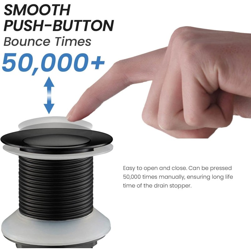 - Tested for 50,000 Smooth Bounce Operations: Engineered for reliability, this pop-up drain has been tested for up to 50,000 bounce cycles. Enjoy smooth and consistent open-close functionality with every press—ensuring long-lasting, dependable performance.