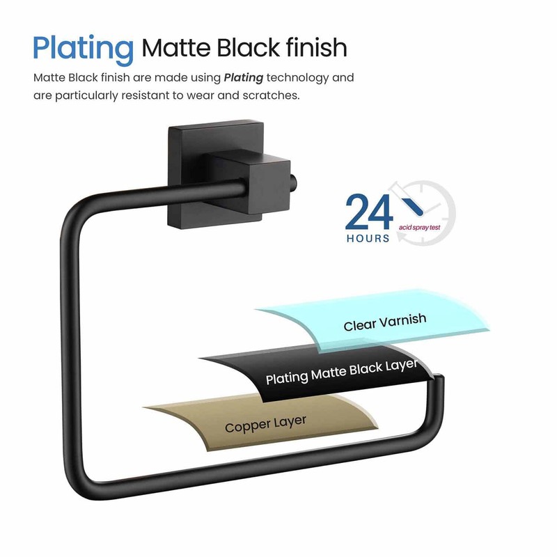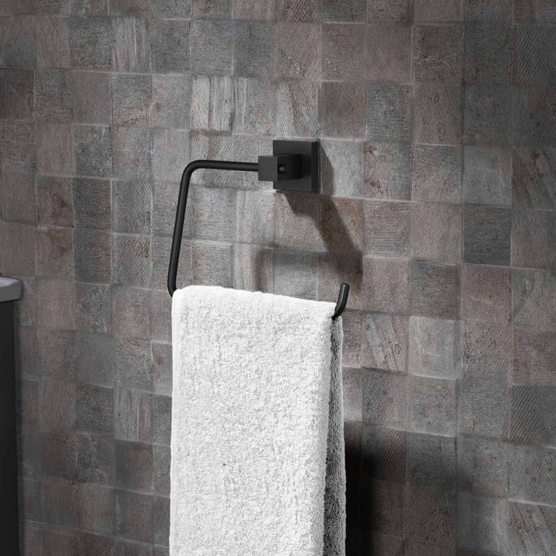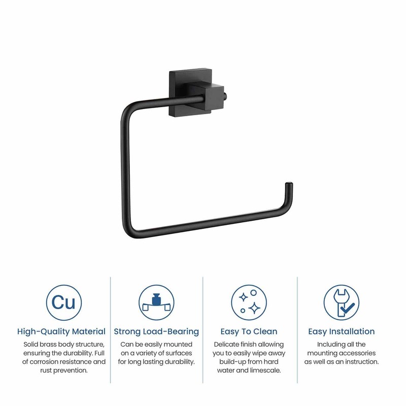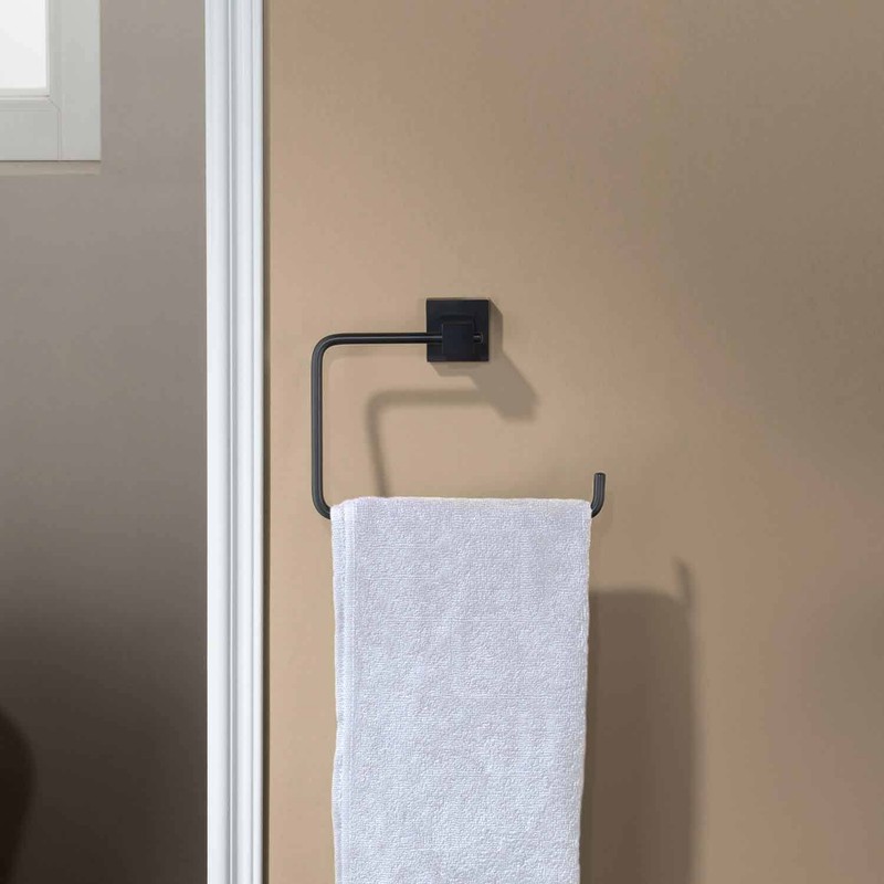 KIBI Cube Bath Hand Towel Ring, Modern Bathroom Towel Holder, Solid Brass Wall Mounted Bathroom Towel Ring (Matte Black) (KBA1506)