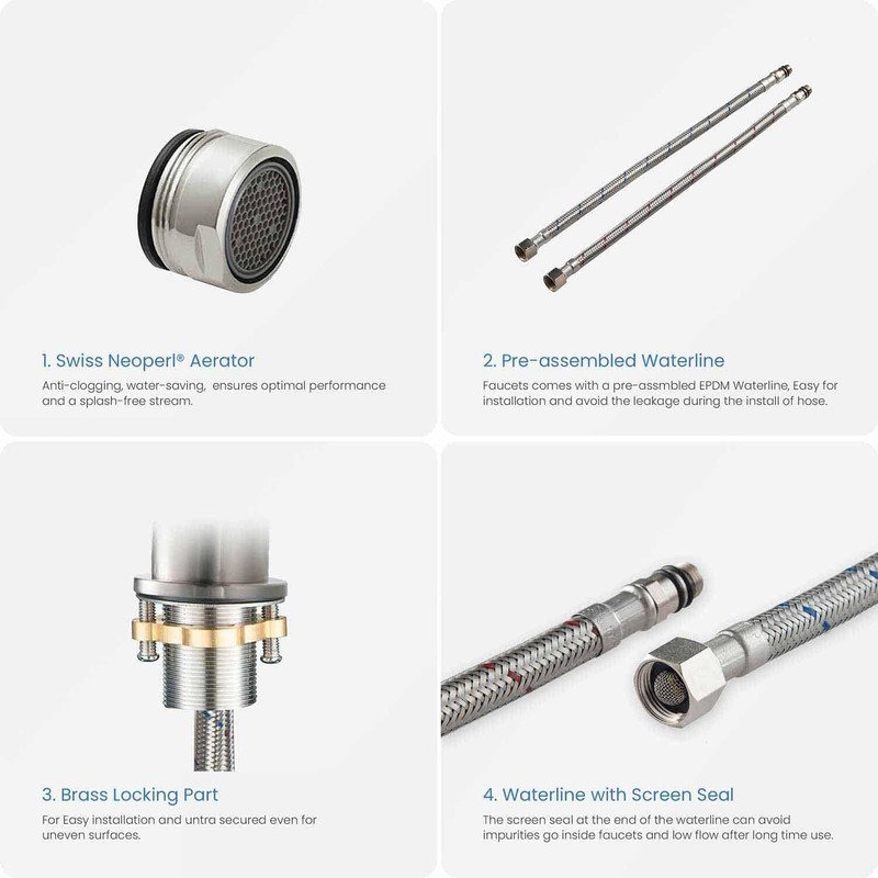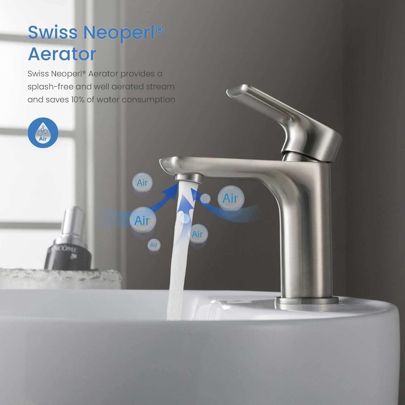 - Swiss Aerator for Water Efficiency - Fitted with a Swiss aerator that delivers a splash-free, consistent stream while conserving water. Improves user comfort and minimizes waste without sacrificing performance.