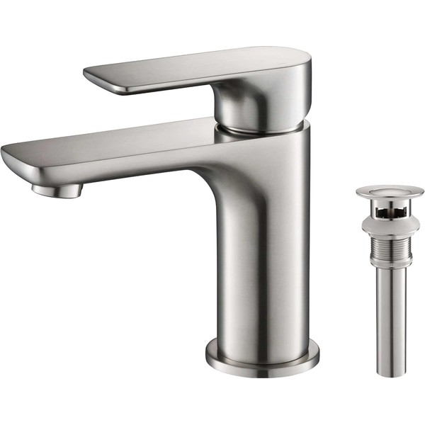KIBI Tender Brushed Nickel Bathroom Sink Faucet with Pop-Up Drain | Single Handle Solid Brass High Arc Spout | Smooth Water Flow and Corrosion-Resistant (Brushed Nickel W/Pop Up Drain)