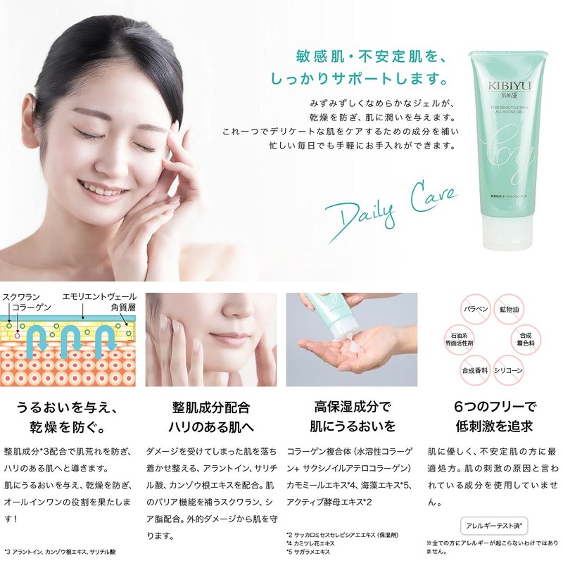 KIBIYU All-in-One Gel, For Sensitive Skin, 3.5 oz (100 g), Moisturizing, Dry & Rough Skin, Serum, Troubled Skin, Unstable Skin, Free Ingredients, Additive-free, Time-saving Care, Lotion, Beauty Serum, Ideal For Men