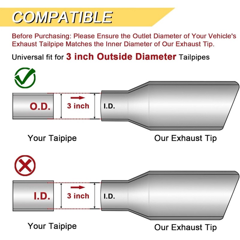 Only Fit For Most Vehicles With 3 inch Outside Diameter Pipe.