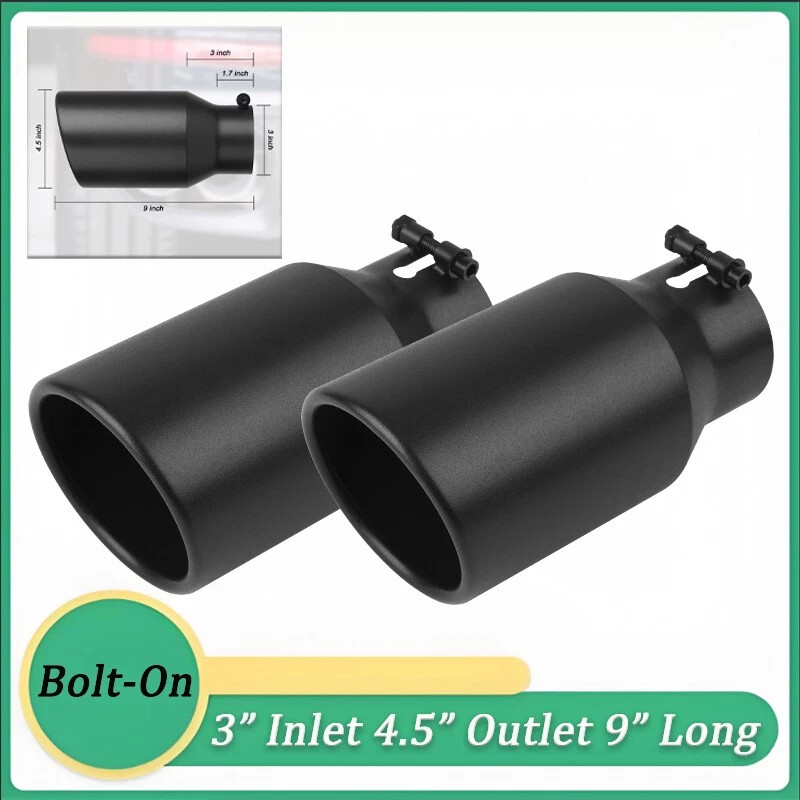 Kible Car Exhaust Tip 3'' Inlet 4.5" Outl 9" Long Black Coated Stainless Steel Set 2pc