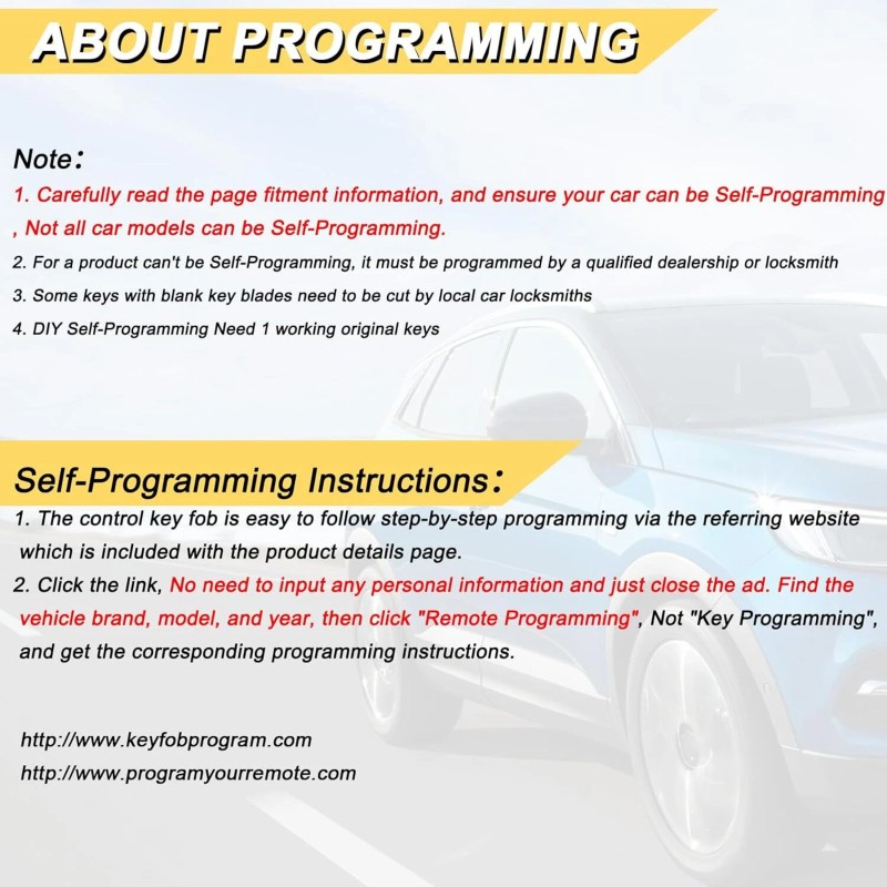 3. There are 2 programming procedures-one for the remote portion and the other one is for the key portion. Remote portion requires 1 working key for self-programming,and Key Portion requires 2 working keys for self-programming
