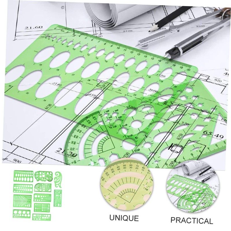 - The drawings templates are made of plastic which are and lightweight. Clear green color can protect our eyes engineering drawing templates.