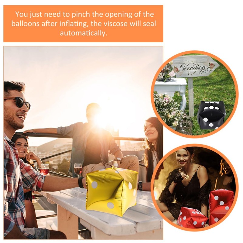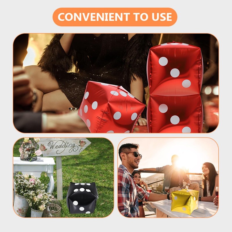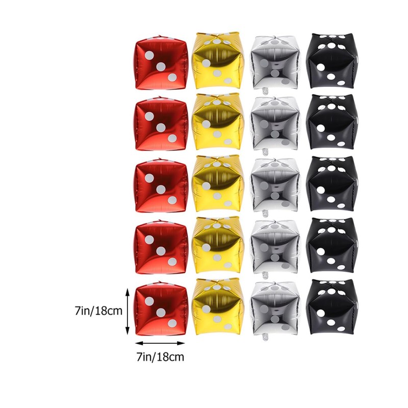 - Birthday balloons-- this balloon is made of aluminum foil material, full of festive atmosphere. place it anywhere in the party to highlight the theme. this dice balloon is suitable for casino party, las vegas party, birthday party, friend gatherings, and colleague group gatherings and more. it also can be as photo prop.