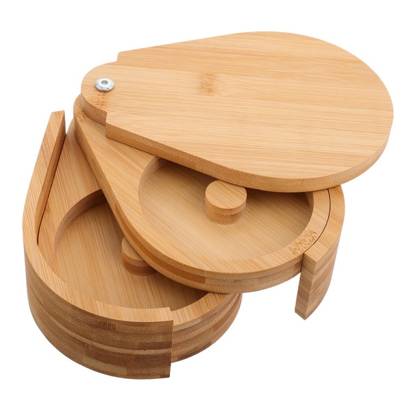 KICHOUSE Three Tier Bamboo Seasoning Container Lid Rotating Sugar and Salt Bo...