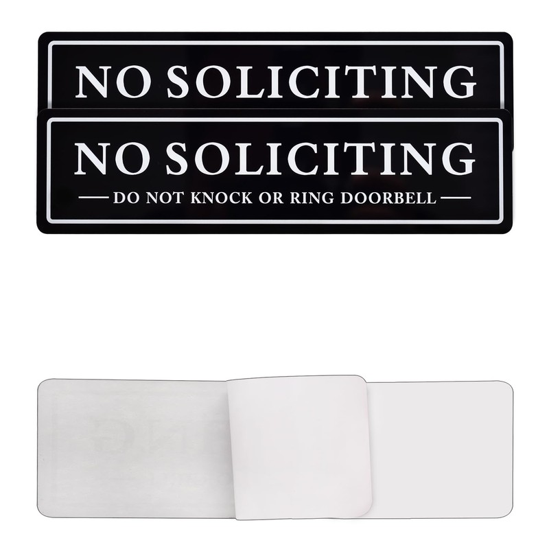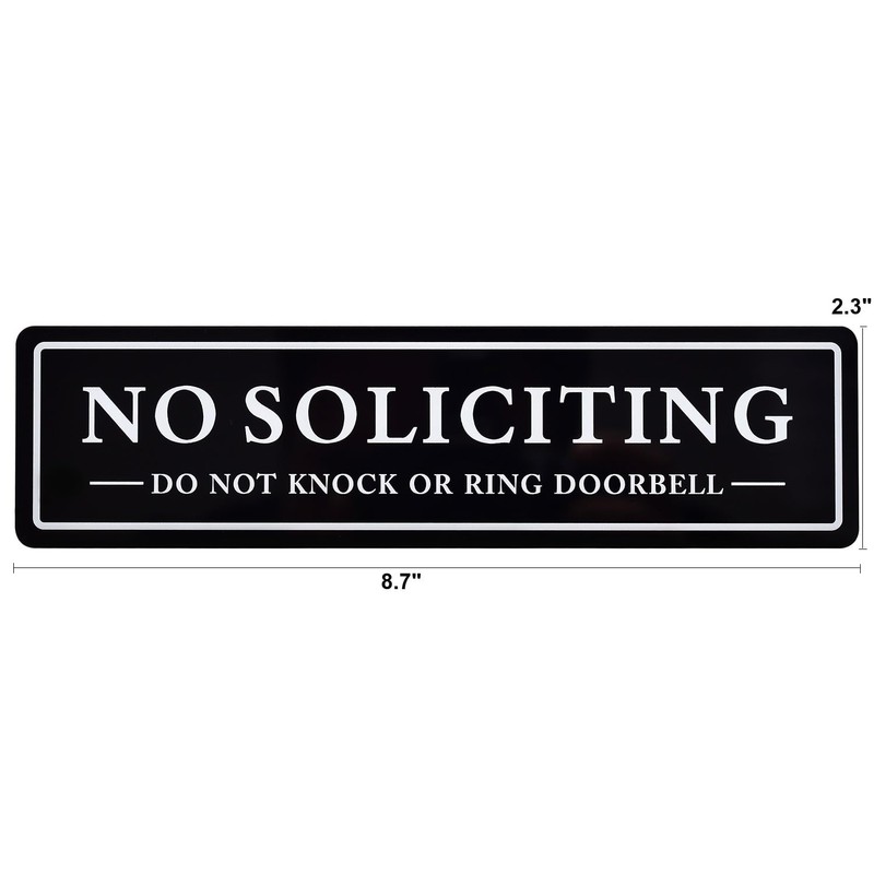 Kichwit 2 Pack No Soliciting Sign, Do Not Knock or Ring Bell Sign, Keeps Unwanted Visitors Away, 8.7 x 2.3 Inches, Black