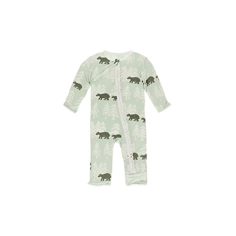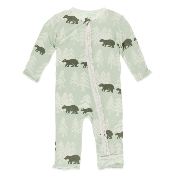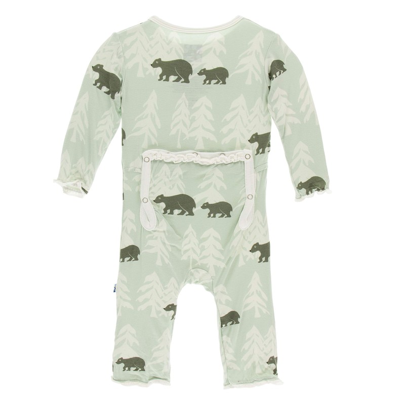 KicKee Pants Print Muffin Ruffle Coverall with Zipper (Aloe Bears and Treeline - 9-12 Months)