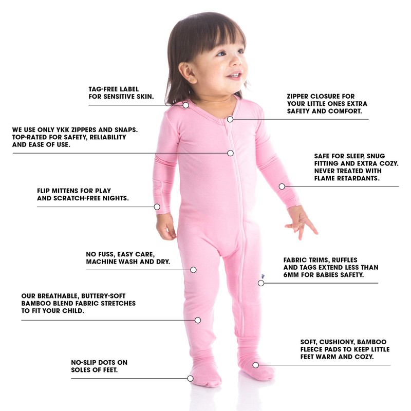 - Stress-free changes: Suddenly need a new diaper or new outfit? No problem! Our footies now have a front 2 way zipper for speedy changes and we added a nifty zip guard to prevent pinched skin.