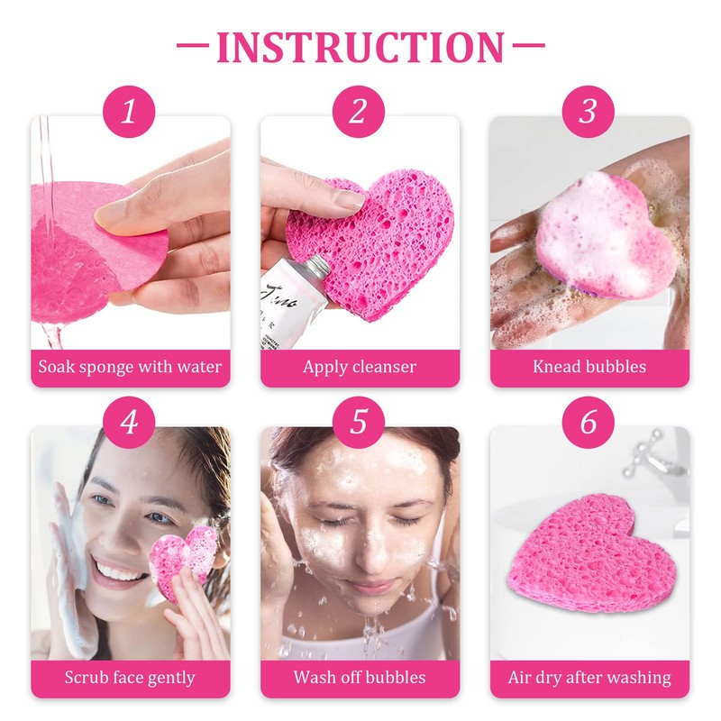 - Economical And Convenient : Each pack of compressed facial sponges comes with 60 Pieces heart shaped sponges,perfect for daily use. Each sponge fits conveniently into your hand, making them an ideal and ergonomic facial cleansing solution. If you use one piece every week, one pack is enough for you to use for one year, so these are an economic solution for your beauty needs
