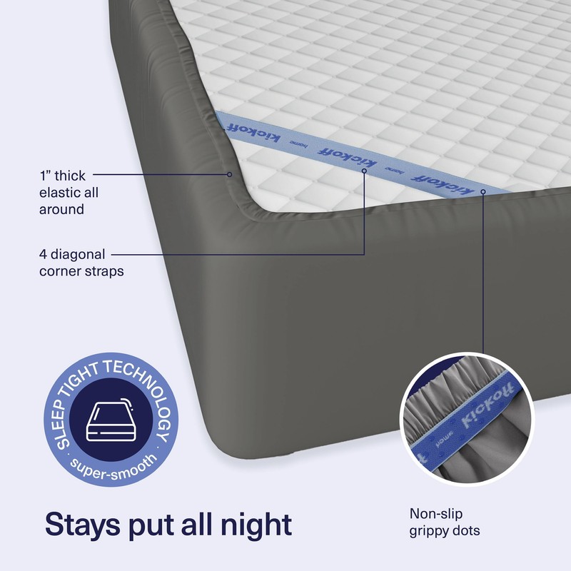 - SleepTight Tech Elastic Straps: Heavy-duty non-slip elastic straps in all four corners of our deep pocket queen sheets and thick elastic all around ensure a snug and secure fit. Our extra deep pocket fitted sheet is designed to fit mattresses up to 19" inches.