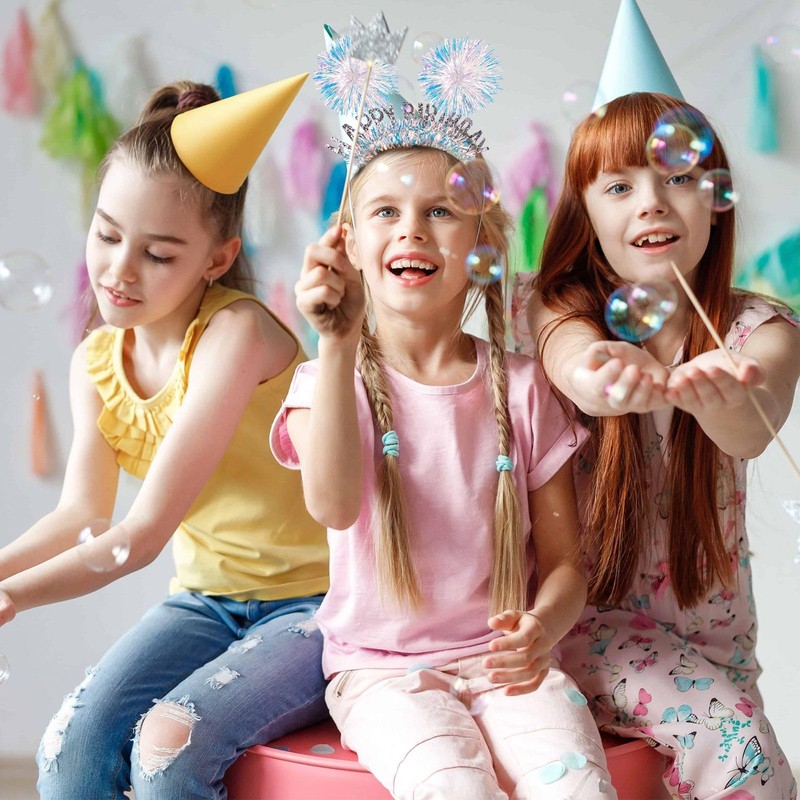 - 【PERFECT BIRTHDAY PARTY DECORATIONS】Birthday hair bands are the perfect decoration for a girl's birthday party. Take beautiful and fun photos with your best friend at the party with this sparkling iridescent fringe birthday hair bands and make happy memories!