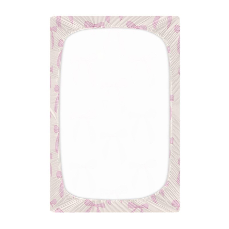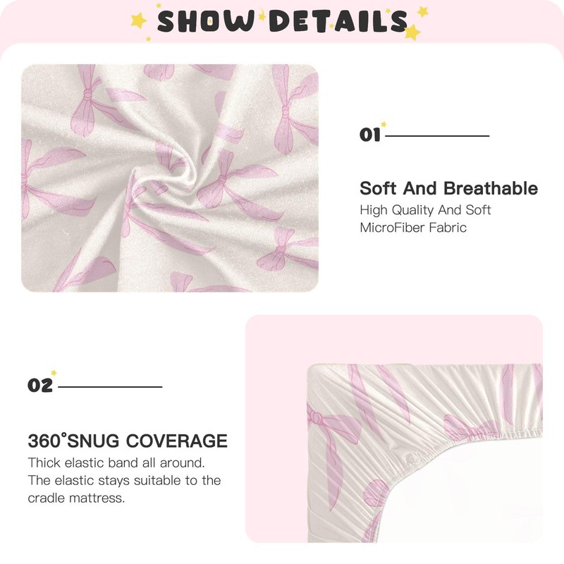 KICPOAY Fitted Crib Sheets Coquette Bows Cute Pink Stretchy Portable Playard Sheets for Baby Toddler, Breathable Soft Mini Crib Mattress 39 x 27 in for Boys and Girls