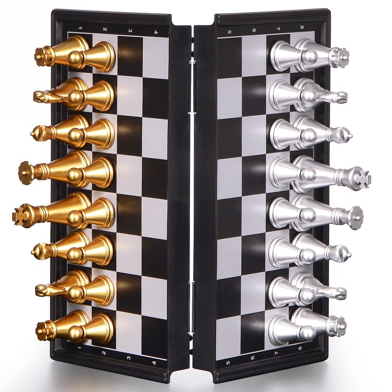 - Portable Storage: The open size of this chessboard measures 5x5x0.94 inches, and the folded size is 5 x2.5x0.94 inches. This chess set comes with a storage box, which can hold all the chess pieces and the chessboard. The box is compact and easy to carry, making it perfect for travel or home use