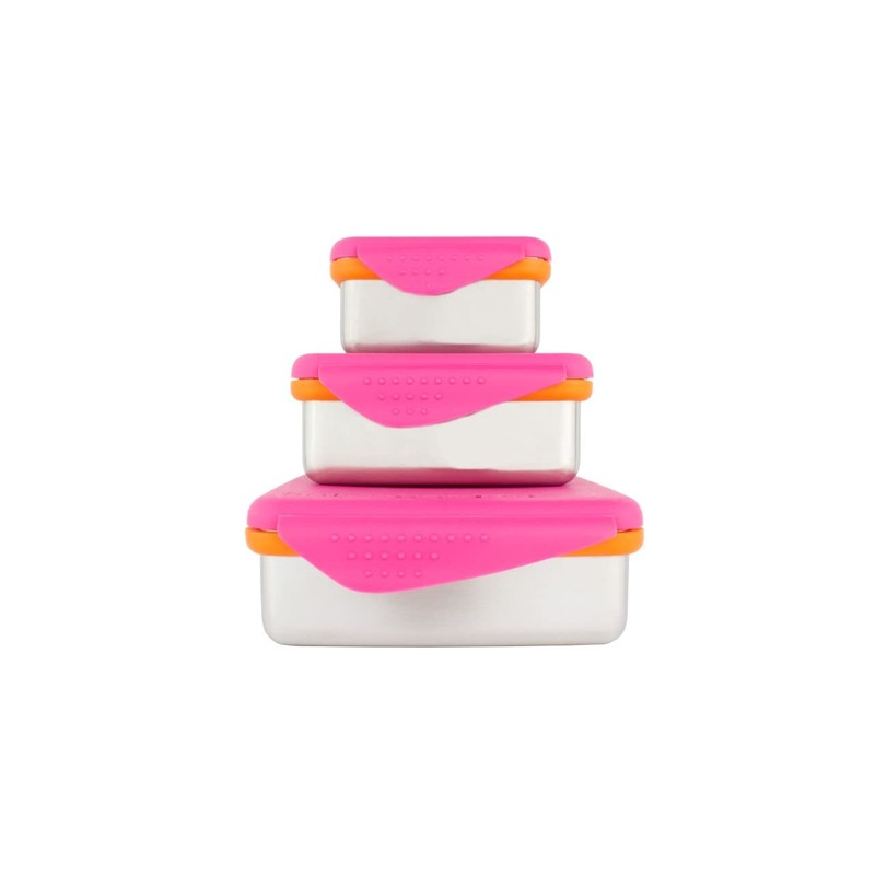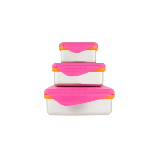 Kid Basix by New Wave Safe Snacker 3 Size Bundle Reusable Stainless Steel Lunchboxes Includes 23oz, 13oz and 7oz Reusable, Fuchsia