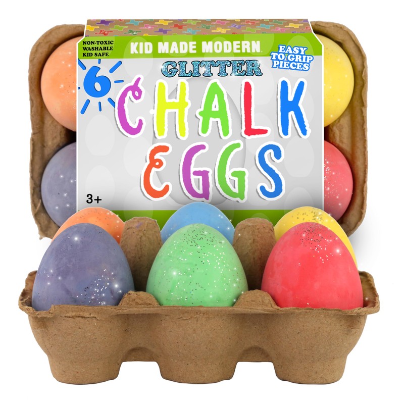 Kid Made Modern Glitter Egg Chalk - Set of 6 Vibrant Egg-Shaped Chalks for Kids - Non-Toxic, Washable, Dust-Free & Mess-Free - Fun Crafting & Drawing for Kids Ages 3+ and Beyond