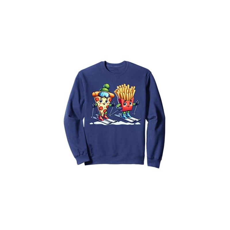 - Cute Pizza & French Fry skiing down slope. The Ski lesson shirt.