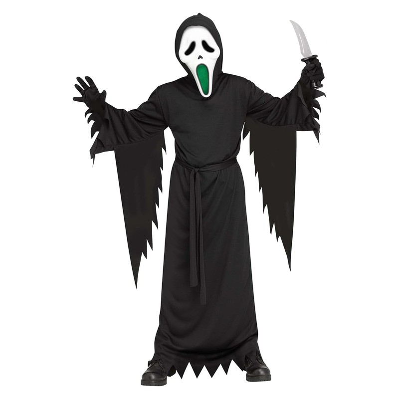 No, You Listen! It is so frustrating when you are talking to your friends on the phone and they just keep yammering on and on and on. Not the normal kind where they tell a story that just drags on, but the kind where they just do not know how to stop talking. You just want to shake them and tell them that that is enough information about their dog’s day at the park. Well, that’s where this costume comes in! Now when you have to listen to interminably long telephone conversations, you can at least feel like a terrifying murderer while you do it! We know it doesn’t sound like it would make that much of a difference, but we promise that when you slip into this costume you will feel the time slip by. You might even come to right outside your friend’s door and not even realize that you walked all the way across town just to see them! Ghastly Good This Child Light Up Fade Mouth Ghost Face Costume will probably not inspire sudden interest in a boring conversation, but it does look pretty awesome. The black robe with its ragged edges looks a like a perfect match for the original Ghostface, and the light up mouth will just add to the illusion that you should be feared. Haunting Around the House Whether you plan to go out in this child’s Ghostface costume, or just sit around the house in creepy comfort, this costume is perfect for you. It is a wonderful medley of scary and spooky all wrapped up in a black cloak! We know you’ll love it too.