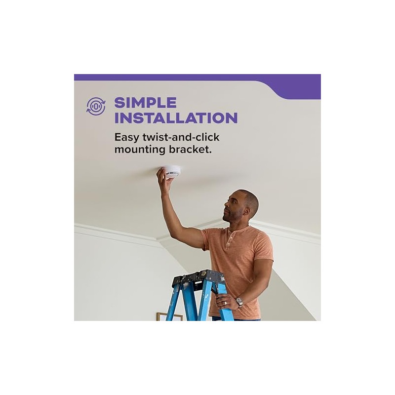 • EASY INSTALLATION: No wiring needed, simply mount the bracket onto the ceiling and twist & click the 5-inch smoke & CO alarm into the bracket.