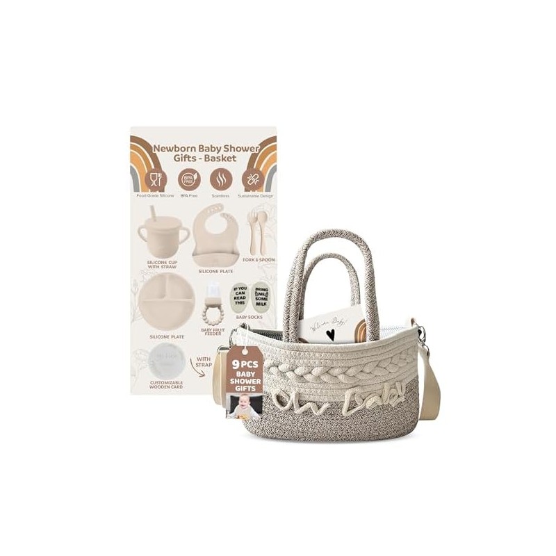 Kiddibodi® Baby Gift Set - Gender Neutral - Silicone Feeding Set with Suction Plate, Bib, Spoon, Sippy Cup, Pacifier Feeder, Basket