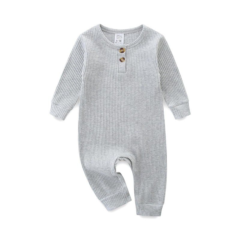 KIDDLETOWN Unisex Newborn Baby Romper Ribbed Onesie Toddler Long Sleeve Jumpsuit, gray