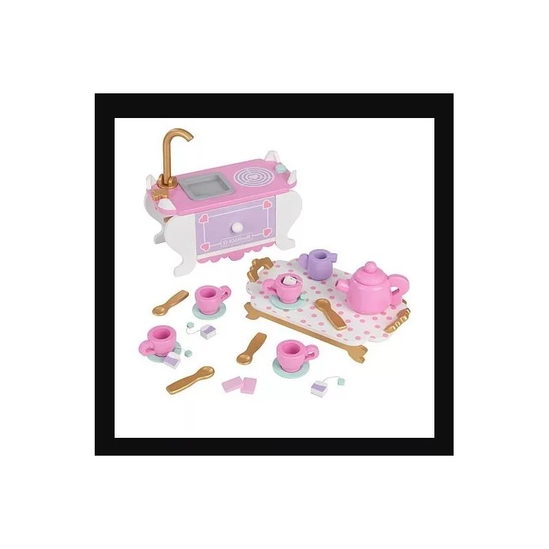 - Includes cream, sugar, kettle, serving tray and role-play faucet and burner