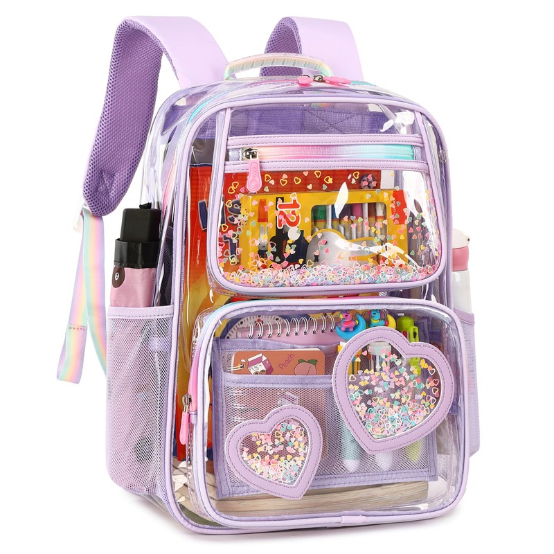 KIDNUO Clear Backpack for Girls Kids Bookbags Transparent Stadium Approved Travel Daypack See Through Middle College School Bag Large Laptop Backpacks for Women Teens Students Purple