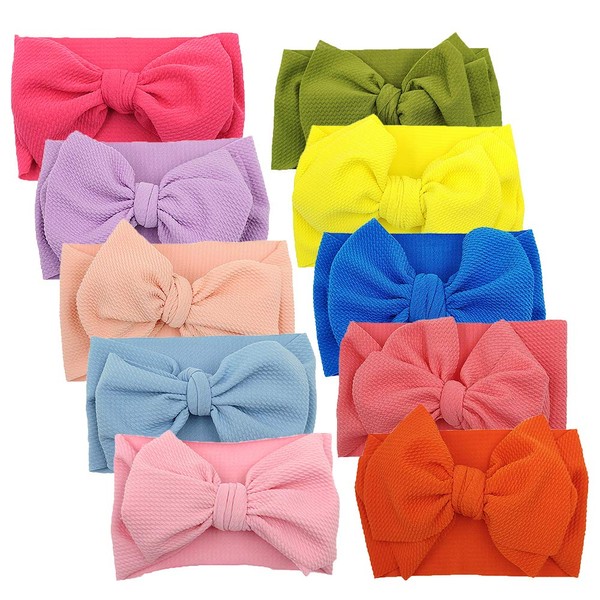 KIDOCHEESE Big Bows Headbands with Elastics Nylon Oversized Head Wraps and Large Hair Accessories for Newborns, Infants, Toddlers, and Kids