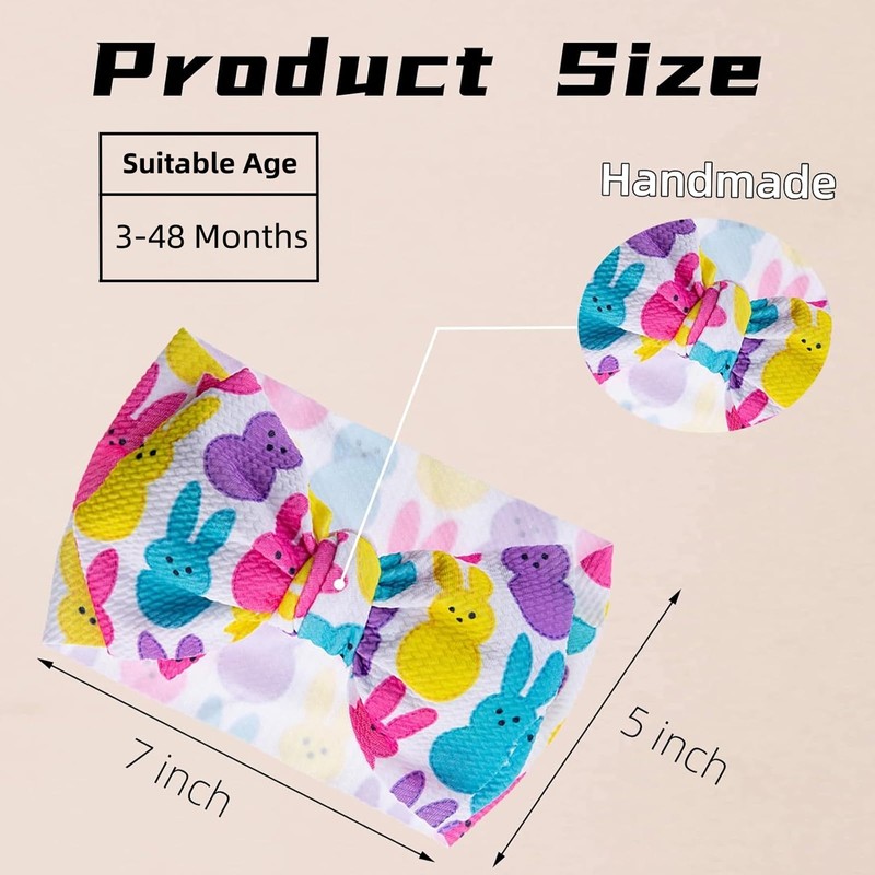 - Enough Size:This easter baby bows is about 5 inches wide and 7 inches long, whether it's comfortable enough for infant, toddlers, children or even adults. This easter baby headbands is suitable for babies and girls from 3 months to 4 years old.