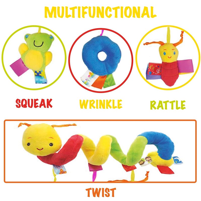 - 🌀 INTERACTIVE: Complete with engaging features, being able to rattle, wrinkle, wrap & twist. Also coming with a squeezy speaker to keep your child even more engrossed
