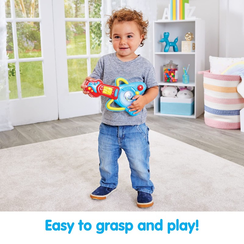 • LITTLE ROCK STAR: Strum the guitar to explore sounds and songs! Features 2 modes includes instrumental notes and musical songs including Twinkle Twinkle Little Star and You Are My Sunshine.