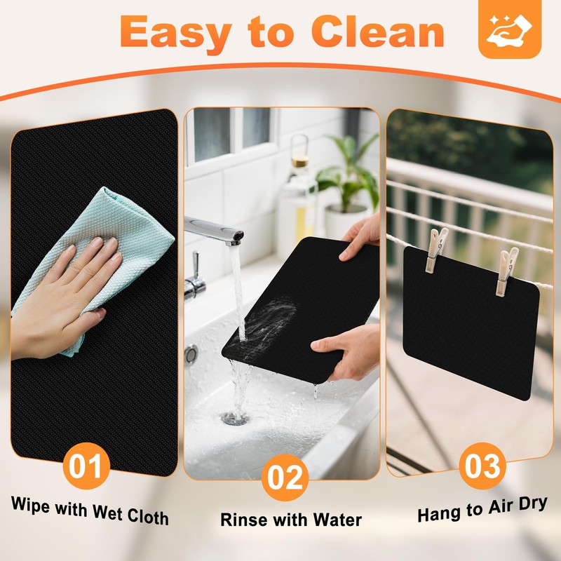 - 【Easy To Clean】 - The appliance mat is reusable and does not need to be replaced frequently. If it is dirty, just clean it in time. It is also very simple to clean. Simply rinse it with water or wipe it with a damp cloth, then hang it to dry. After it is completely dry, you can continue to use it