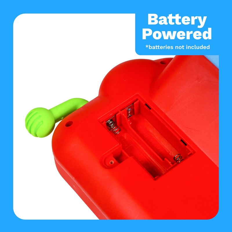 - SPECIFICATIONS: Dimensions: 13 x 6.5 x 8 inches; Color: Red or Pink; Material: Plastic; Warning: Choking Hazard, small parts; Note: Batteries Included; Recommended Ages: 3+