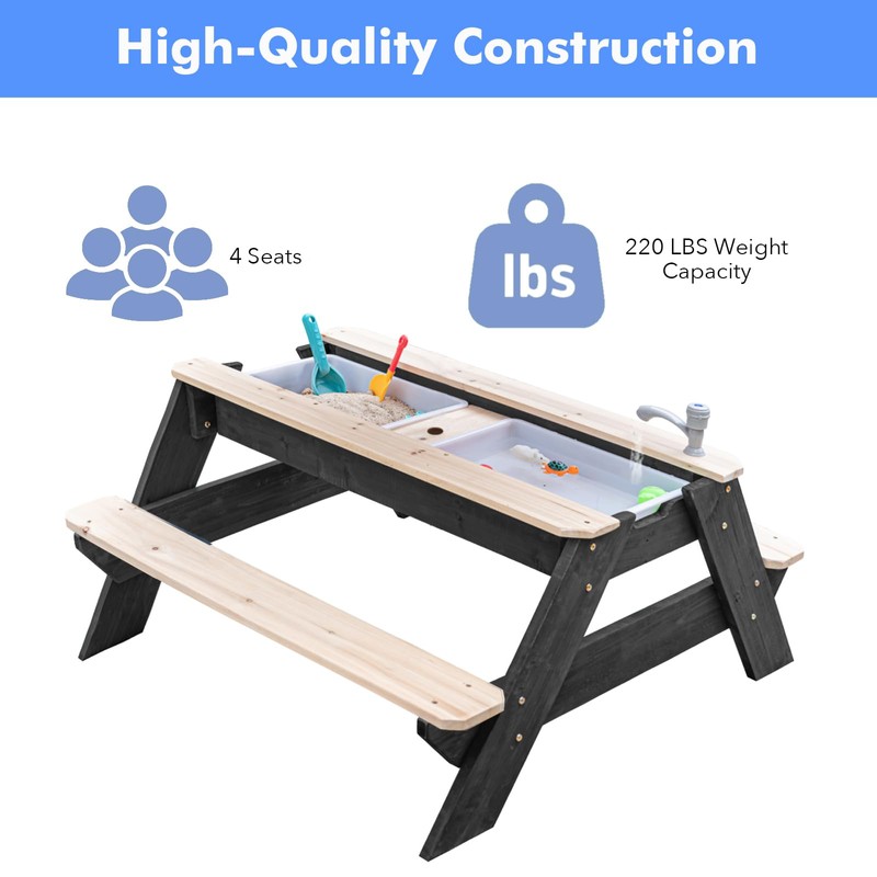 - The Ideal Gift for Endless Fun: Give children the gift of joy and imagination with this versatile picnic table. Whether it's playing with water, building sandcastles, or enjoying meals and conversation outdoors, this table guarantees hours of entertainment.