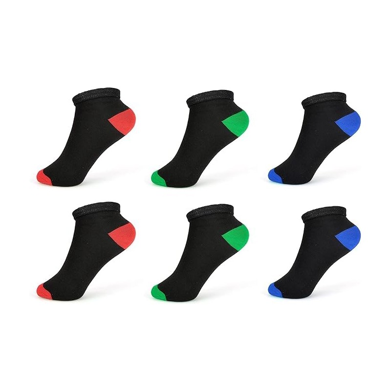 - ✅ | 6 PAIRS BOYS BLACK 9-12 (4-7 YEARS) - COLOURED HEELS+TOES - LONG LASTING TRAINER ANKLE SOCKS - SCHOOL, PE, EVERYDAY WEAR | For Boys - Black - Polyester for a Fresh, Smooth & Natural Silky Soft Touch Fit - Lightweight Socks to Wear with All Types of Shoes - Perfect for School, PE, Outdoor Play