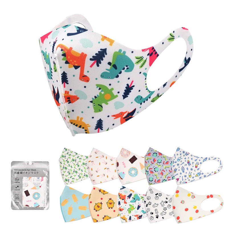 (Kids) Antibacterial Silver Ion Mask, Washable, 3D UV Protection, Individually Wrapped (Set of 2 Navy)