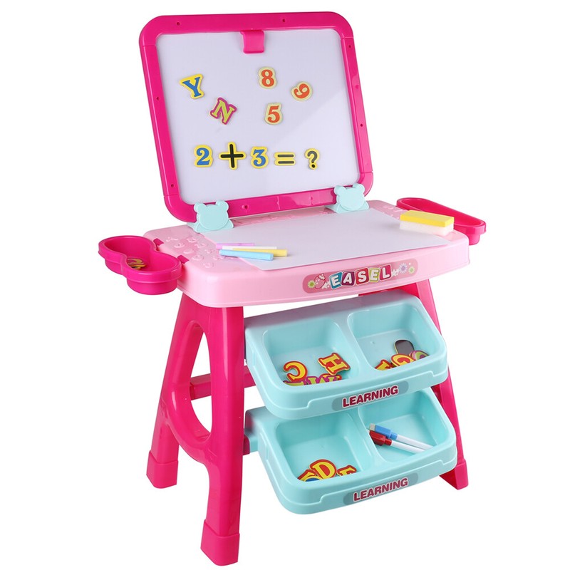 Children's easel has double-sided,  One side is the chalkboard, which can be drawn, written and counted with chalk; the other side is a whiteboard with a whiteboard pen.