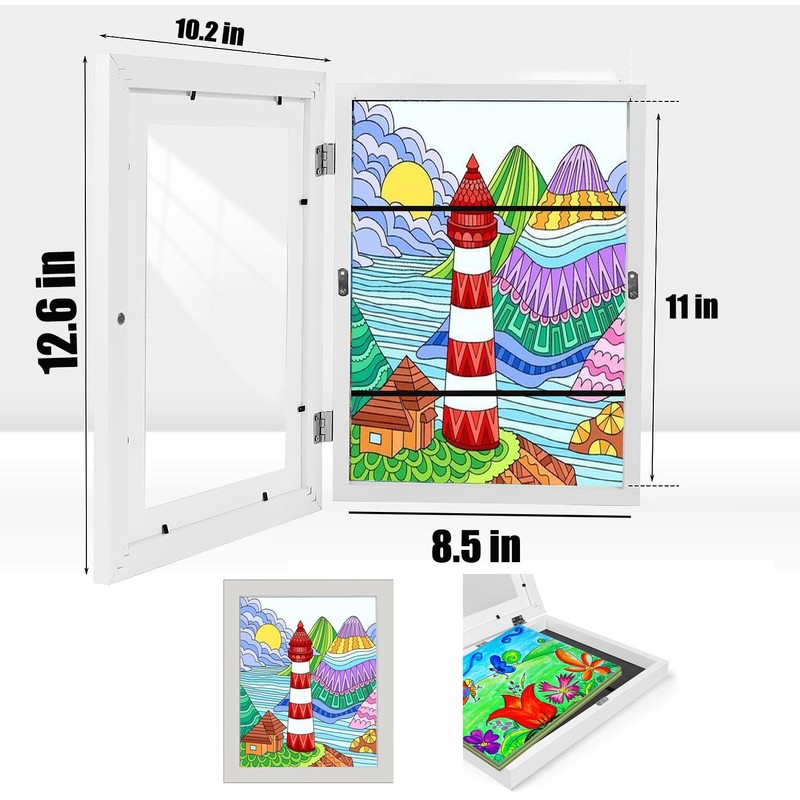 - Wall Decor - Artwork frame is perfect for 8.5x11 inches artwork, This art frame is perfect for displaying children's drawings, artwork, pictures, documents, certificates! Simply hang it on the wall to instantly display your artwork and multiple photos.