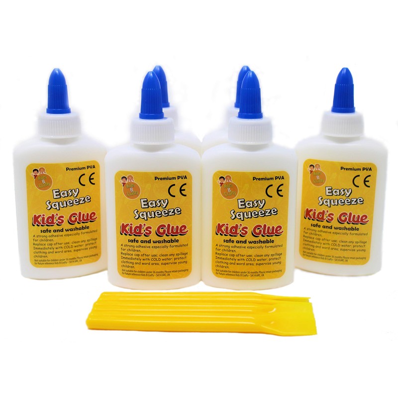 - SAFE TO USE, PVA Glue for Crafting, Easy Squeeze Bottles - Washable, Ideal Size For Children PVA Glue 100ml Each, Safe And Non Toxic (600ml Total) + 6 Glue Spreaders Included
