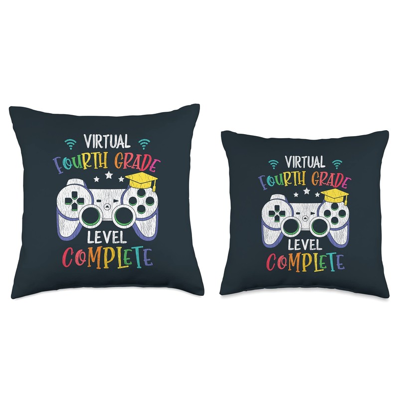 Kids Back To School Apparel.USA Virtual 4th Grade Complete Video Game Back to School Gamer Throw Pillow, 18x18, Multicolor