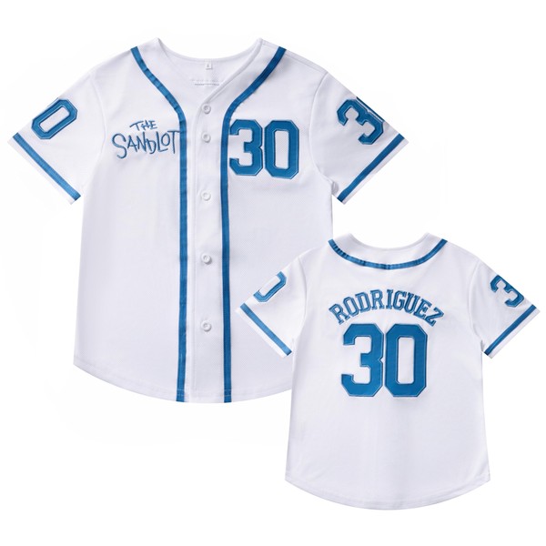 Kids Baseball Jersey The Sandlot Benny The Jet Rodriguez #30 Movie Stitched Baseball Shirt for Boys Girls White