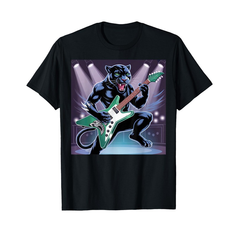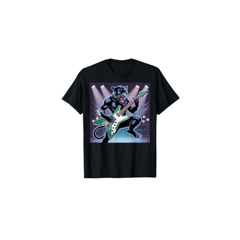 Kids Black Panther Playing Guitar Rock Star Rock and Roll T-Shirt