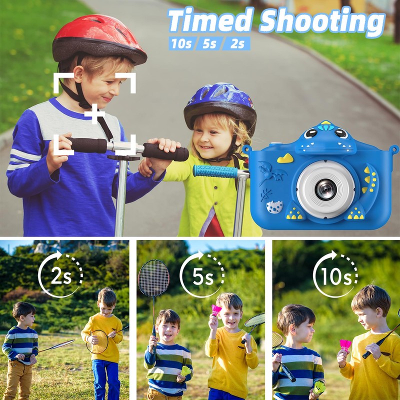 - Multiple Functions Kids Camera: Children's camera is equipped with 8 times digital zoom + front and rear dual cameras time-lapse capture 2 inch 1080 P IPS screen 1300 W pixels. Selfie, video recording, playback, 3 puzzle games, recording and other functions