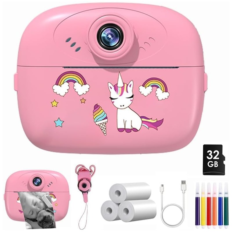 - 【Package Includes】: 1 x Kids Speed Camera, 1 x 32 GB Memory Card, 3 x Rolls of Printing Paper, 6 x Colored Pencils, 1 x Lanyard, 1 x Type-C Cable, 1 x User Leads; This Kids Camera is a ideal gift for 3 4 5 6 7 8 9 10 11 12 year olds! Suitable for Birthday, New Year, Christmas, Thanksgiving and so on. This is a kids toy camera (not a high end camera).