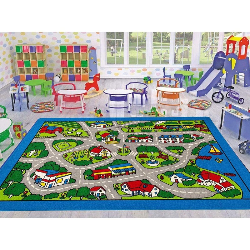 Kids Carpet Playmat City Life - Learn & Have Fun Safe! Children's Educational Traffic System, Multi Color, Play Mat Rug Great for Playing with Cars, Bedroom Playroom (8 Feet X 10 Feet)